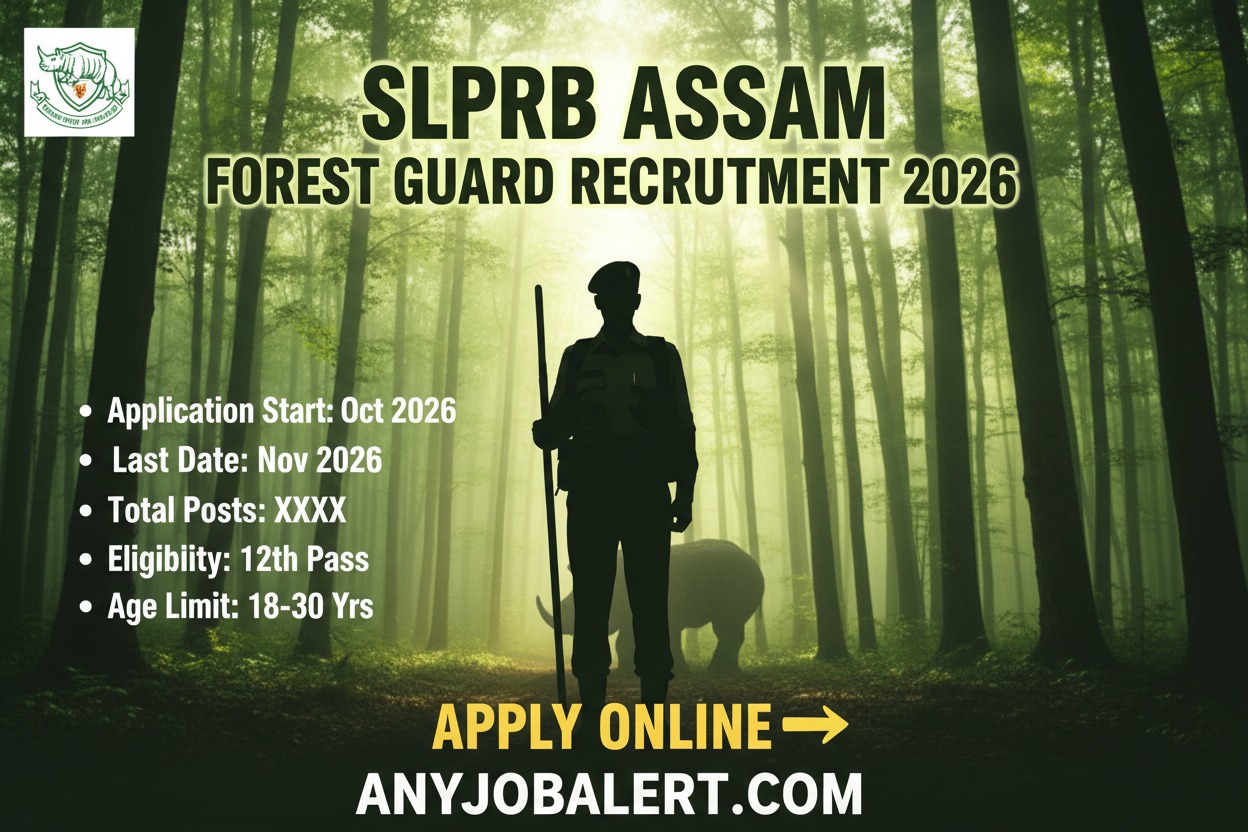 SLPRB Assam has released a massive Forest Guard recruitment notification for 2,972 posts. Candidates with 12th pass or any Bachelor’s degree can apply online. Check eligibility, selection process, important dates, and how to apply before the last date 22 February 2026 on anyjobalert.